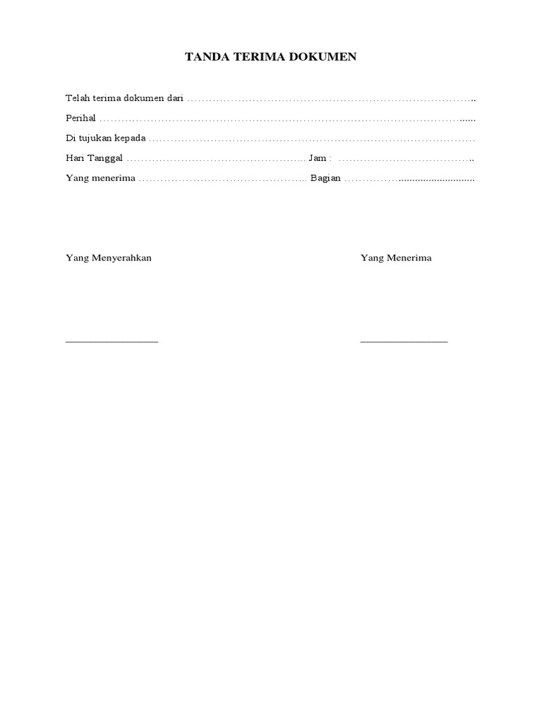Tanda terima dokumen tanda terima ini dibuat di jakarta pada hari jumat tanggal 31 mei tanda terima dokumen. Baik itu berupa uang, dokumen, barang, ataupun hal lainnya.